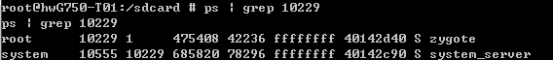 这里把10229转换成整型,在模块全路径中搜索'/',即找出模块的名称,再调用sub_9288(10229,"libxxghost.so")得到一个值v20,根据72行的日志可以得出,这就是获取一个进程中的模块基址,也就得出10229就是一个进程号。那么,10229是一个普通进程吗? 通过在手机终端的命令行下输入ps | grep 10229,得出的结果是zygote进程。