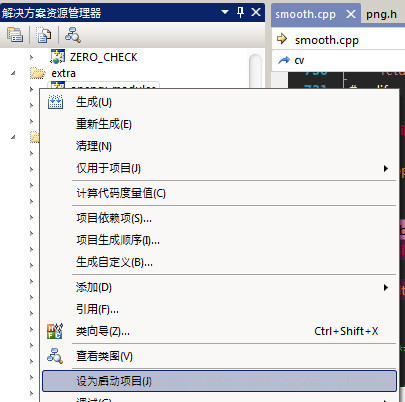 关于启动项的指定,我们可以在解决方案资源管理器里面,对需要设为启动项的那个项目反键点击,在弹出的菜单项中点击【设为启动项(J)】进行设定。如下图: