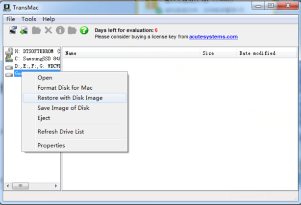 在TranMac工具中右键U盘单击Restore With Disk Image