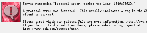 升级了nas系统,可能内部的linux内核和ssh服务都跟着升级了导致SSH Secure File Transfer不在正常使用,连接会提示:Server responded Protocol error packet too long 1349676920,已经连接服务端并响应,协议错误,包太长!Google了一翻找到了一些答案,还未来的及试验,先保存起来后面再测试。