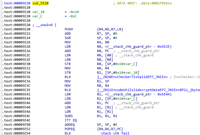 第二、如果快速的知道so中是否有签名校验功能,可以直接在字符串列表中搜索"signatures"即可,现在也有很多应用会在so中调用Java层的类信息,所以需要去看JNI_OnLoad中arm指令,或者直接搜索字符串列表,因为一般Java层类信息,都是xxx/yyy/zzz/MMM这样的字符串格式,通过肉眼排查也是可以的。