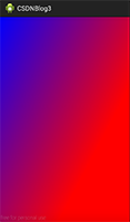 // 定义几种初始颜色 private static final int COLOR_BLUE = 0xff0000ff; private static final int COLOR_GREEN = 0xff00ff00; private static final int COLOR_RED = 0xffff0000; // 定义起始和最终颜色 private int mStartColor = COLOR_BLUE; private int mToColor = COLOR_RED;然后创建一个从屏幕上中心点到屏幕1/3高度的下中心点的渐变: