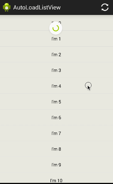 listView.setOnLoadNextListener(new OnLoadNextListener() { @Override public void onLoadNext() { handler.sendEmptyMessageDelayed(MSG_LOAD_MORE, 3000); } });