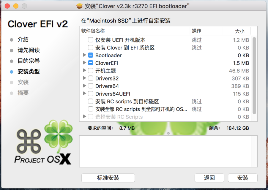 07、Clover 手动勾选需要的选项,并执行安装。