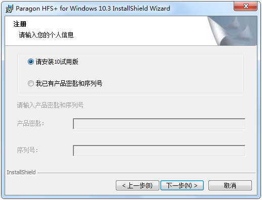 12、操作系统重启后,Paragon HFS for Windows_10.3 跳出软件需要激活,选择 我已有密钥和序列号。