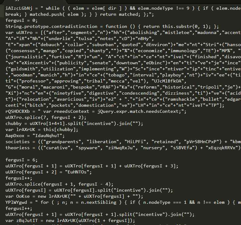 Js下载者的功能是下载Locky勒索病毒并执行,其使用了代码混淆的方法,使得文件内容无法被识别,而且其变种很多,所以很难对其进行检测我们捕捉的原始脚本如下
